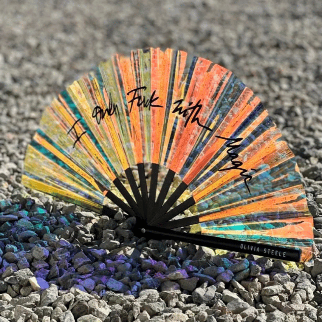 The famous I ONLY FUCK WITH MAGIC fan is now available in our favorite color : DICHROIC !