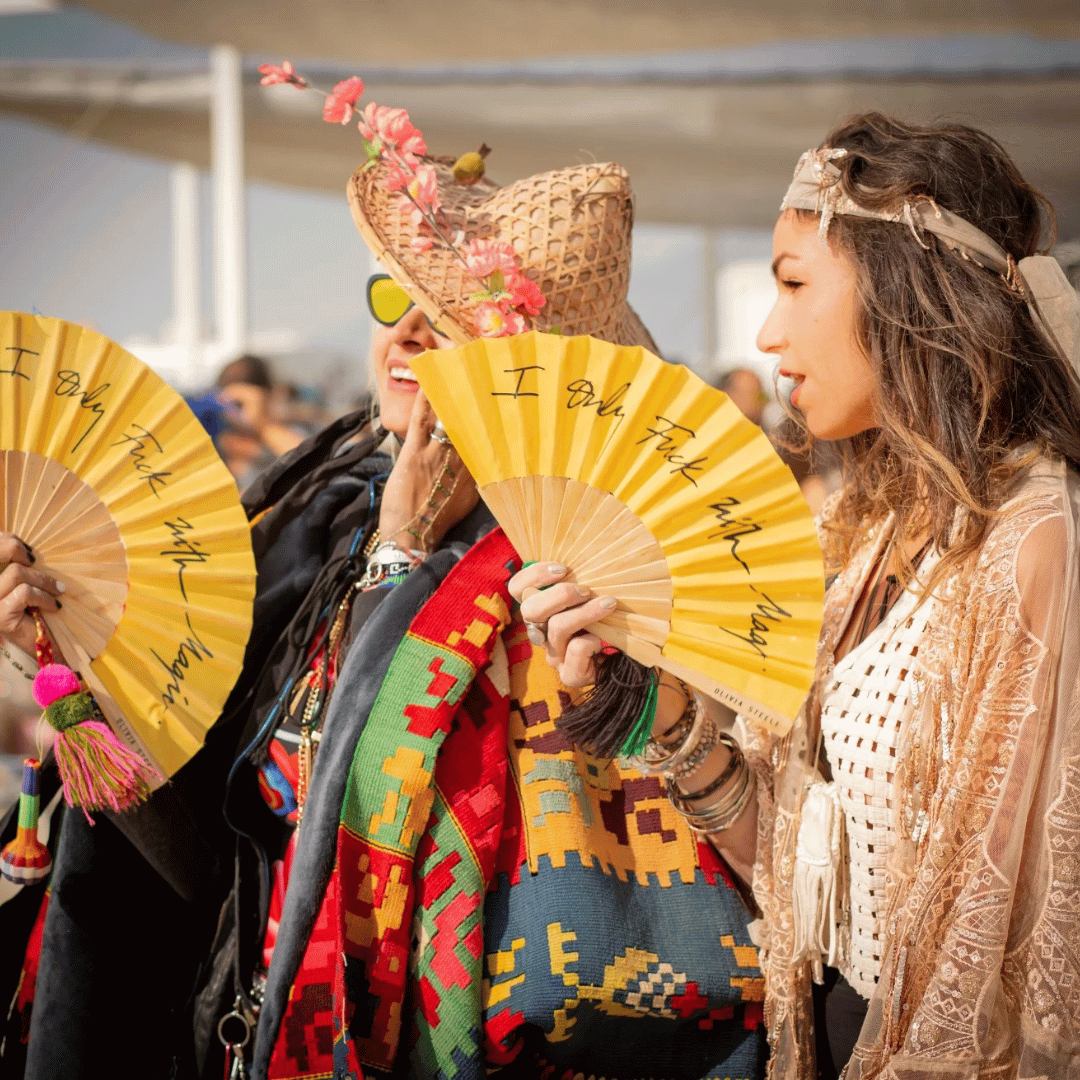Stay cool in style! Created with love and intention, this one of a kind hand fan is a work of art in itself – a miniature version of Olivia’s manifestations. It’s the perfect conversation starter and reminder, whether it’s on the Playa or at the pool!