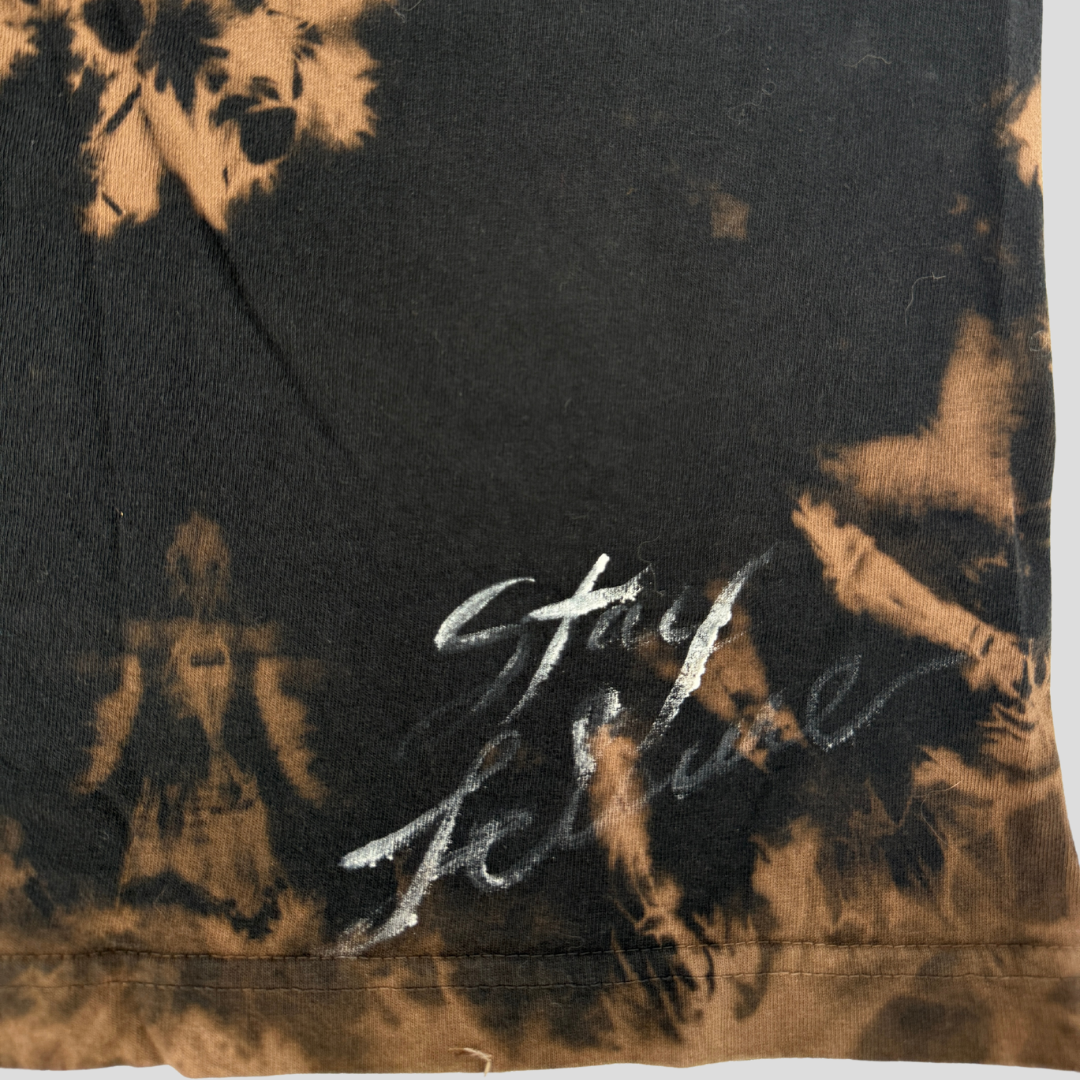 The Sleeveless Tie Dye T-Shirt blends vintage energy with modern edge. Featuring bold graphics and custom bleach-dye patterns, no two pieces are alike. This shirt carries the spirit of BOGA Venice — raw, cultural, and built for presence.