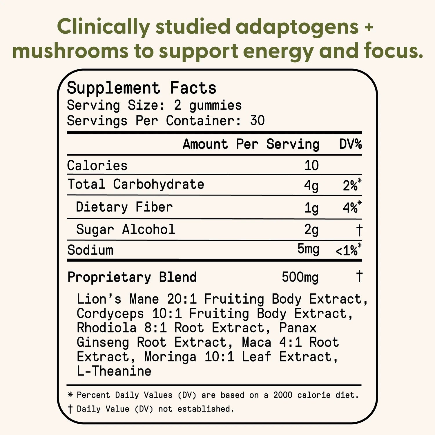 Includes Lion’s Mane, Cordyceps, Rhodiola, and Ginseng
