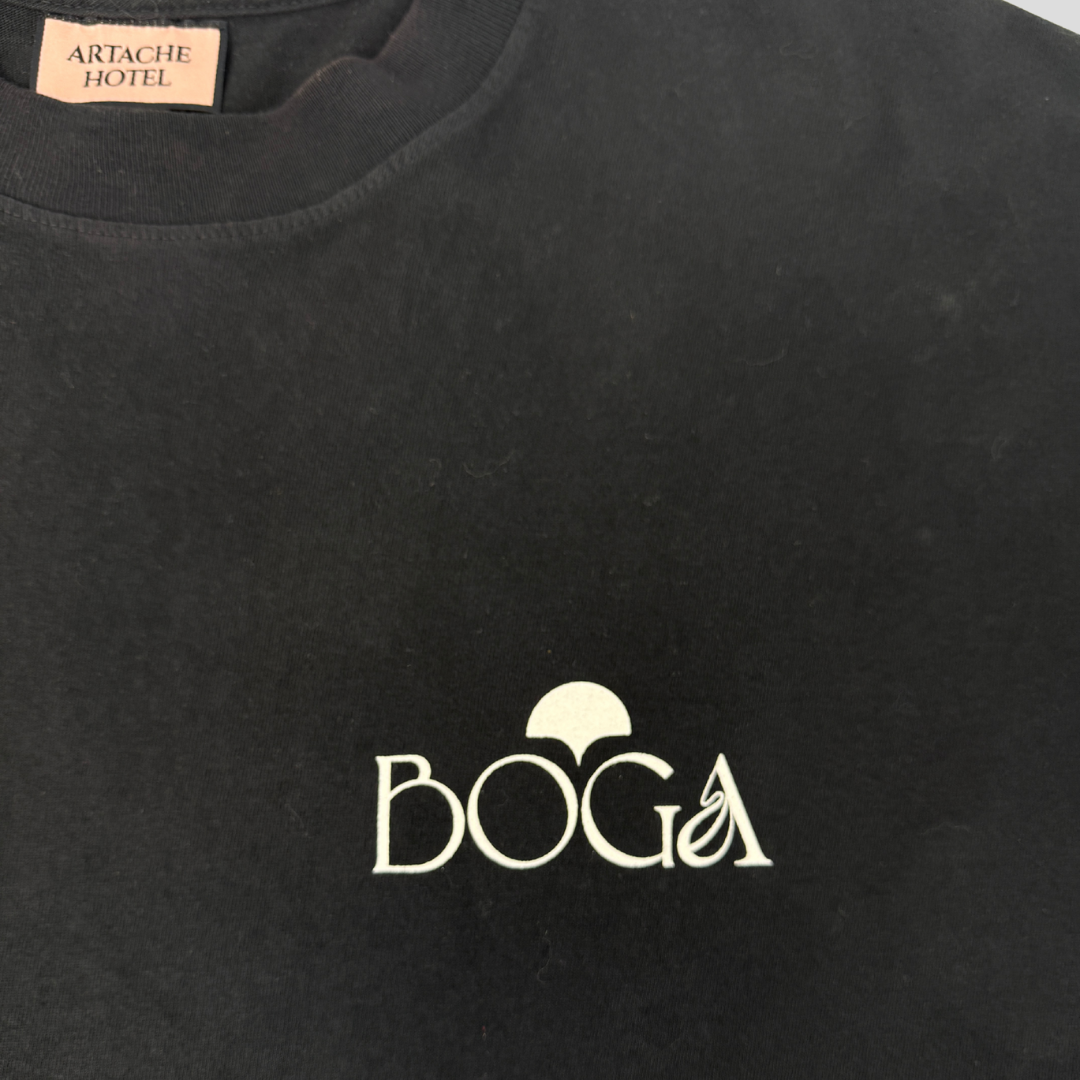 Made from heavyweight cotton, this tee features the BOGA logotype on the chest and a striking figure holding a red cap motif across the back. The design blends surreal iconography with modern streetwear energy, offering both comfort and statement appeal. Each piece is cut for a relaxed fit and finished with crisp printing, making it ideal for layering, styling, and collecting as part of the BOGA world.