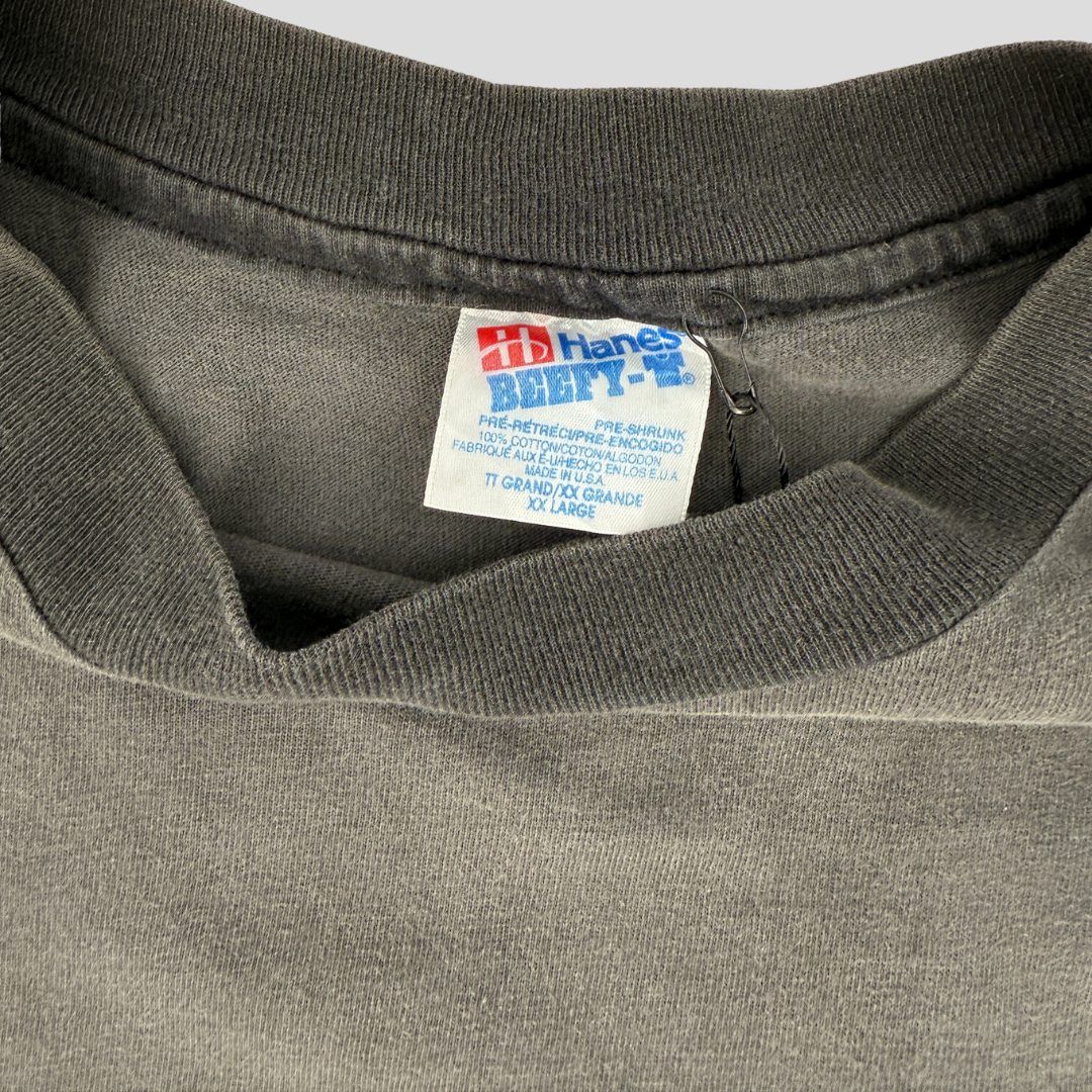 A vintage black tee carrying the “Down The Hatch” seafood and lounge artwork from Ponce Inlet, Florida. Faded to perfection with a one-of-a-kind worn look, it’s a piece of history turned wearable art.